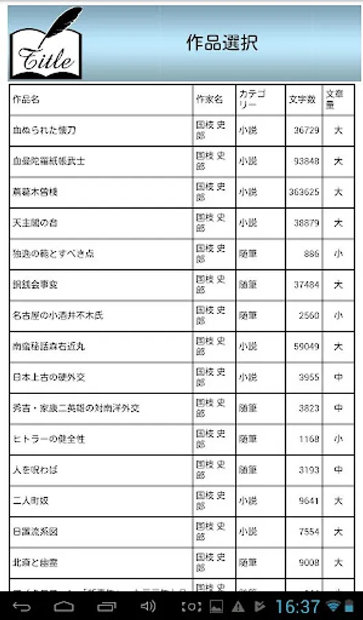 vol 件数 選択 作家名 タイトル カテゴリー 文字数 文字量
