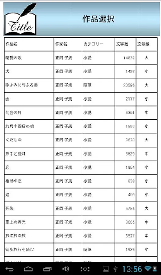 vol 件数 選択 作家名 タイトル カテゴリー 文字数 文字量