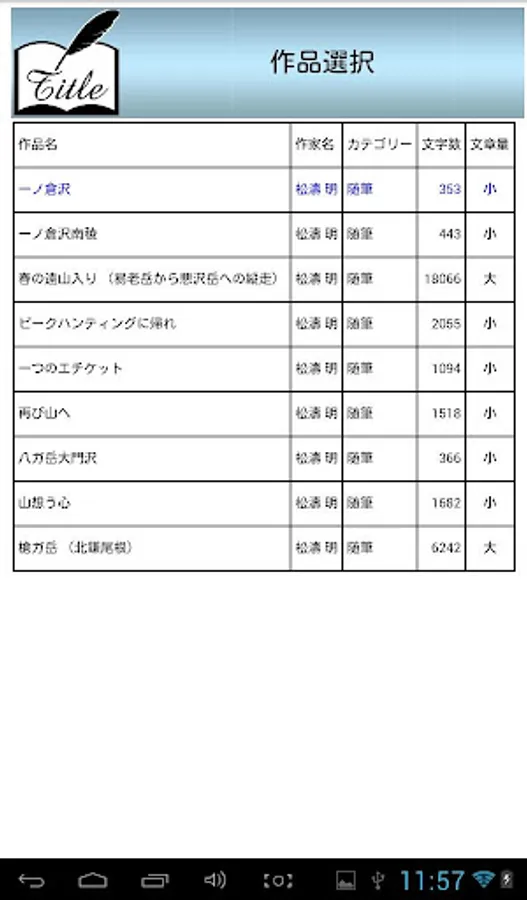 vol 件数 選択 作家名 タイトル カテゴリー 文字数 文字量
