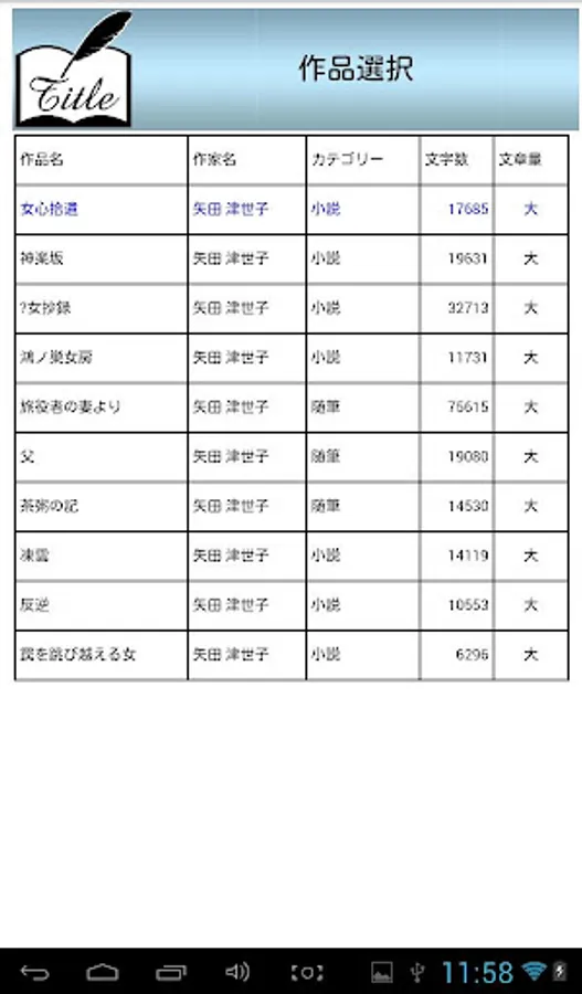 vol 件数 選択 作家名 タイトル カテゴリー 文字数 文字量