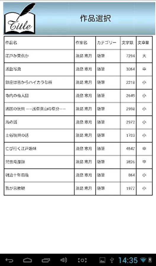 vol 件数 選択 作家名 タイトル カテゴリー 文字数 文字量