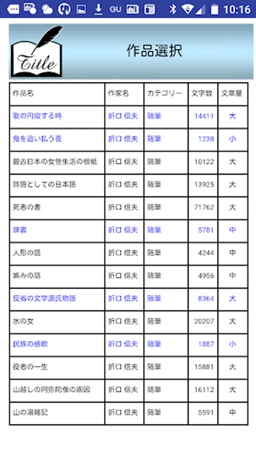 vol 件数 作家名 タイトル カテゴリー/文字数/文字量
