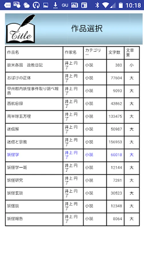 □文学の内容量の大小から選択可