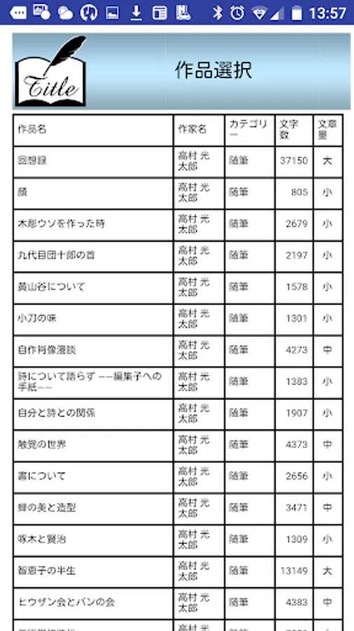vol 件数 作家名 タイトル カテゴリー/文字数/文字量