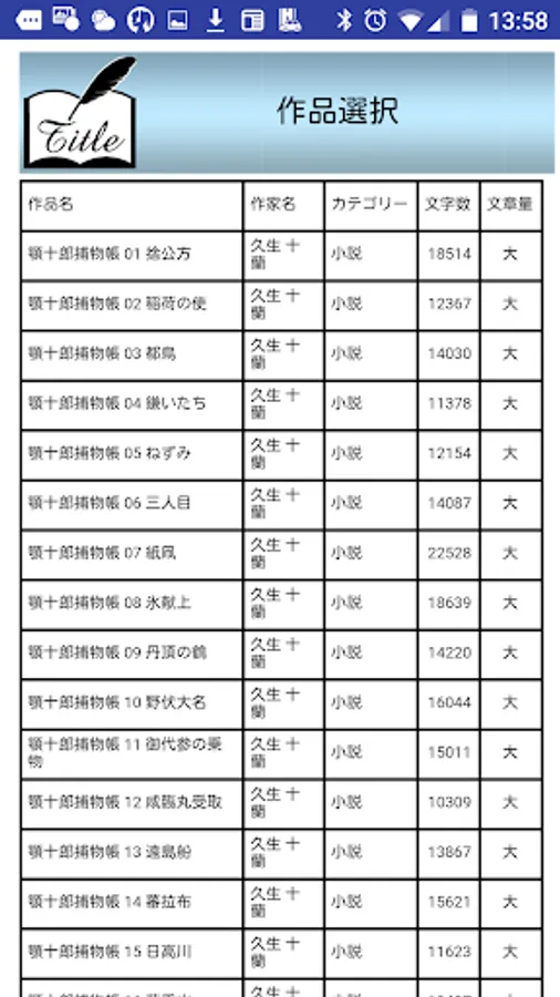 vol 件数 作家名 タイトル カテゴリー/文字数/文字量