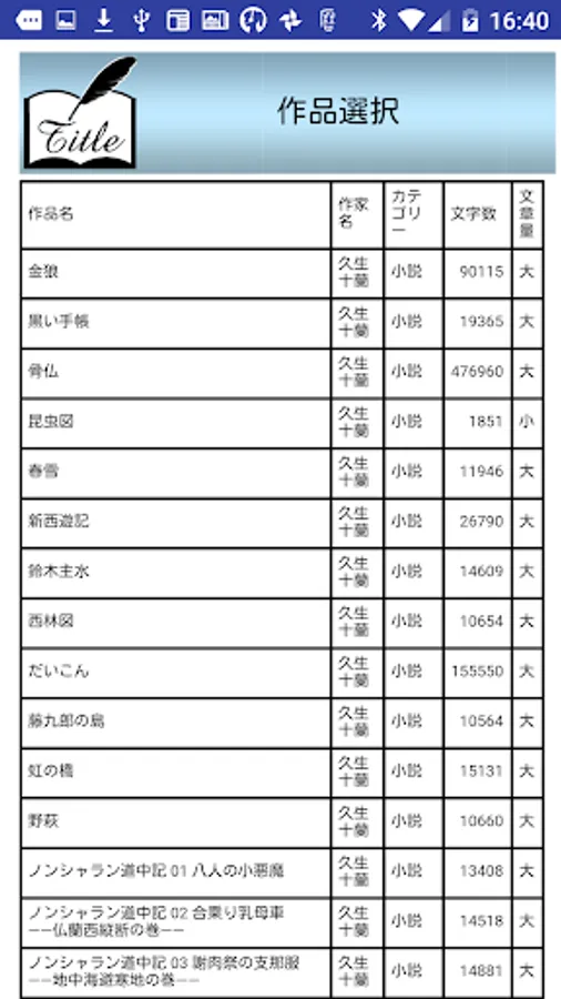 vol 件数 作家名 タイトル カテゴリー/文字数/文字量