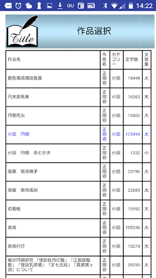 vol 件数 作家名 タイトル カテゴリー/文字数/文字量