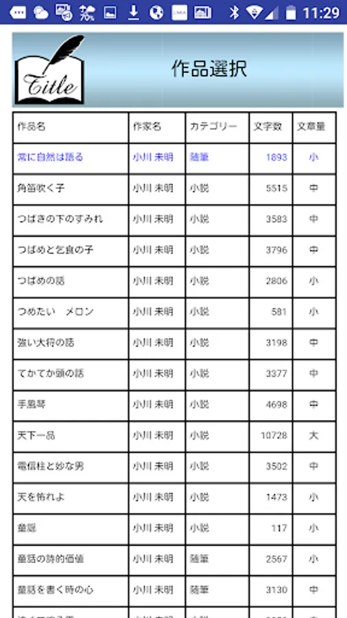 □文学の内容量の大小から選択可