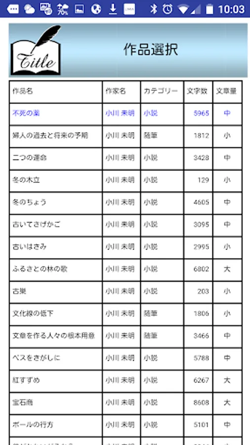 名作VOL 件数 作家 作品名 カテゴリー/文字数/文字量