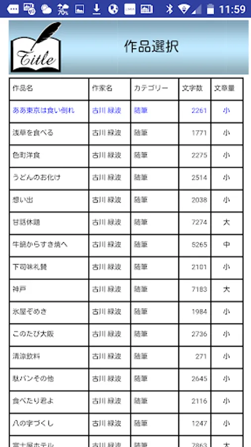 名作VOL 件数 作家 作品名 カテゴリー/文字数/文字量