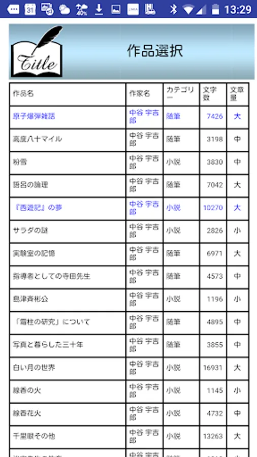 名作VOL 件数 作家 作品名 カテゴリー/文字数/文字量