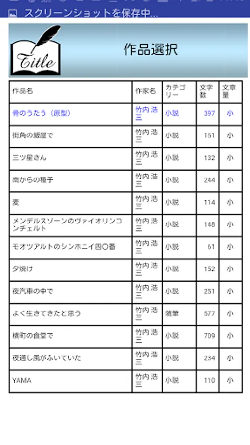 名作VOL 件数 作家 作品名 カテゴリー/文字数/文字量
