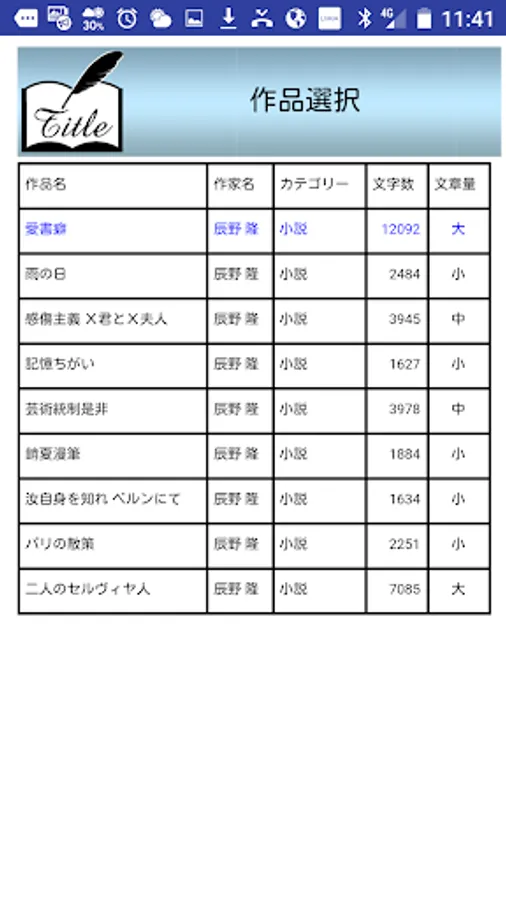 名作VOL 件数 作家 作品名 カテゴリー/文字数/文字量