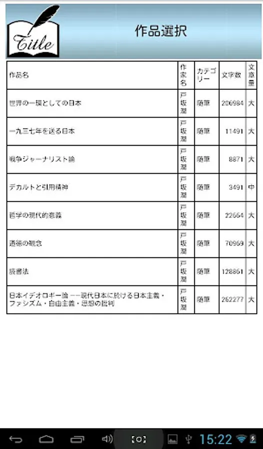 vol 件数 選択 作家名 タイトル カテゴリー 文字数 文字量