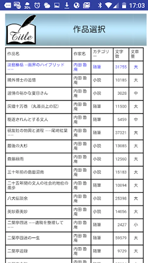 vol 件数 作家名 タイトル カテゴリー/文字数