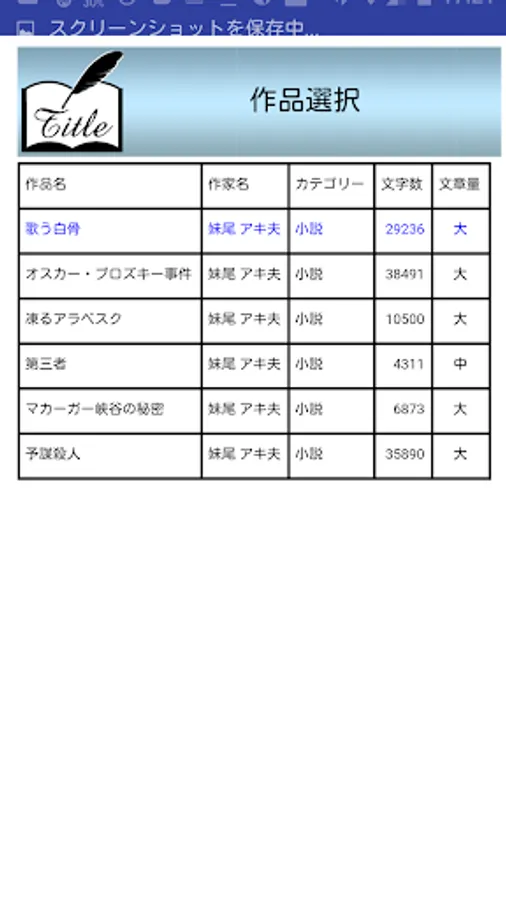 vol 件数 作家名 タイトル カテゴリー/文字数