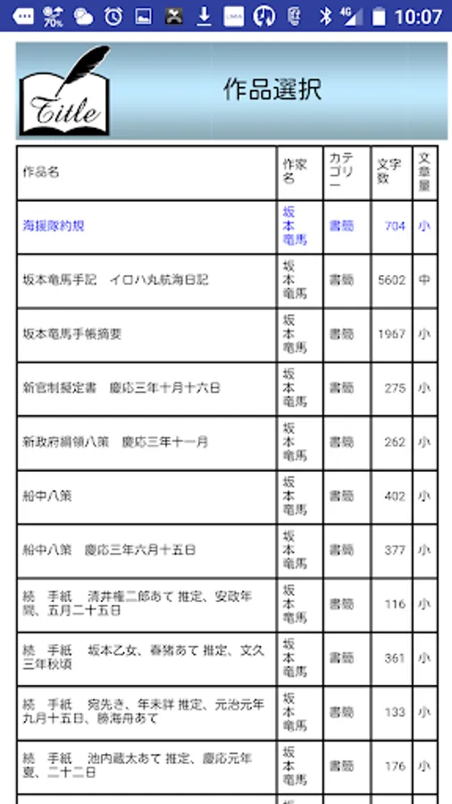 vol 件数 カテゴリー 作者 タイトル カテゴリー/文字数/文字量