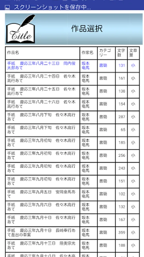 vol 件数 カテゴリー 作者 タイトル カテゴリー/文字数/文字量