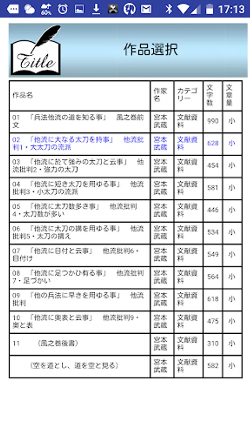 vol 件数 選択 作者 タイトル カテゴリー 文字数/文字量