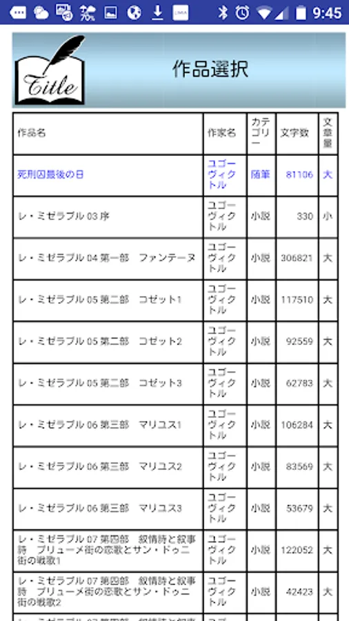 名作VOL 件数 著者名 タイトル カテゴリー 文字数 文字量