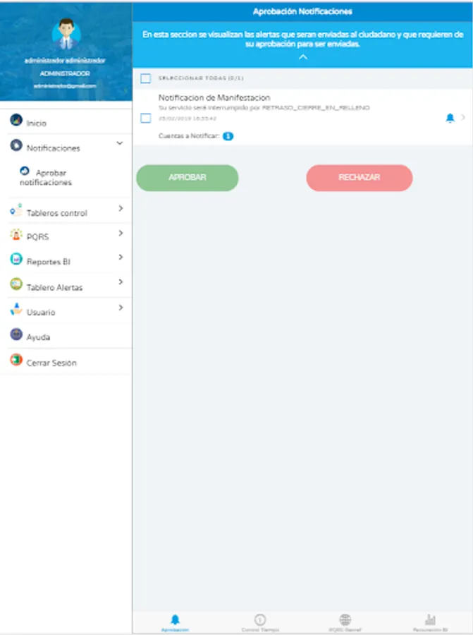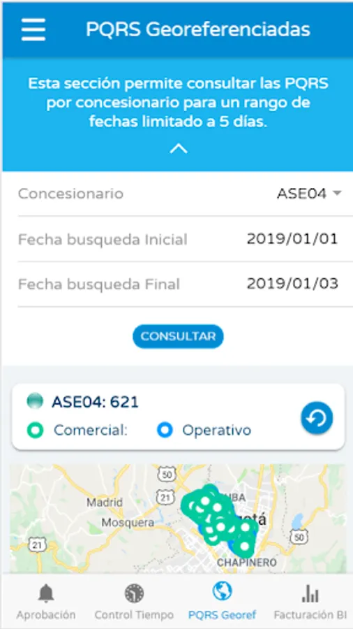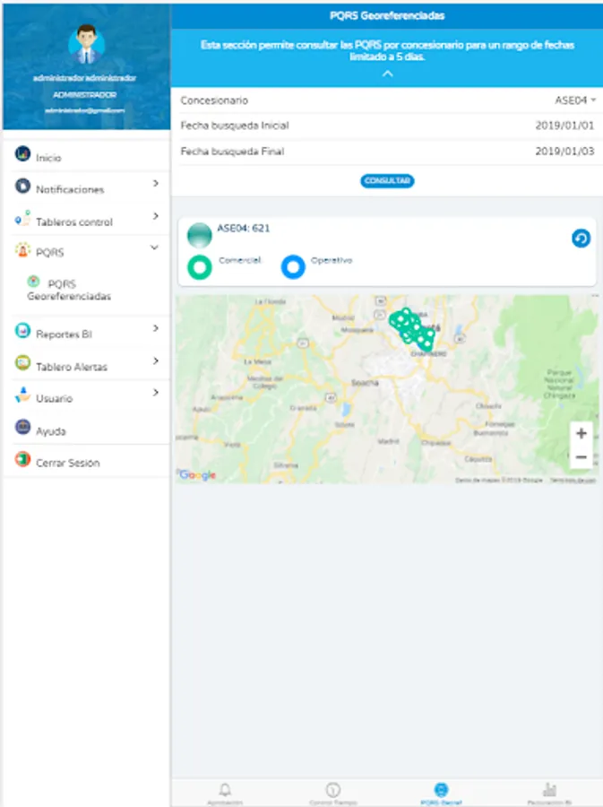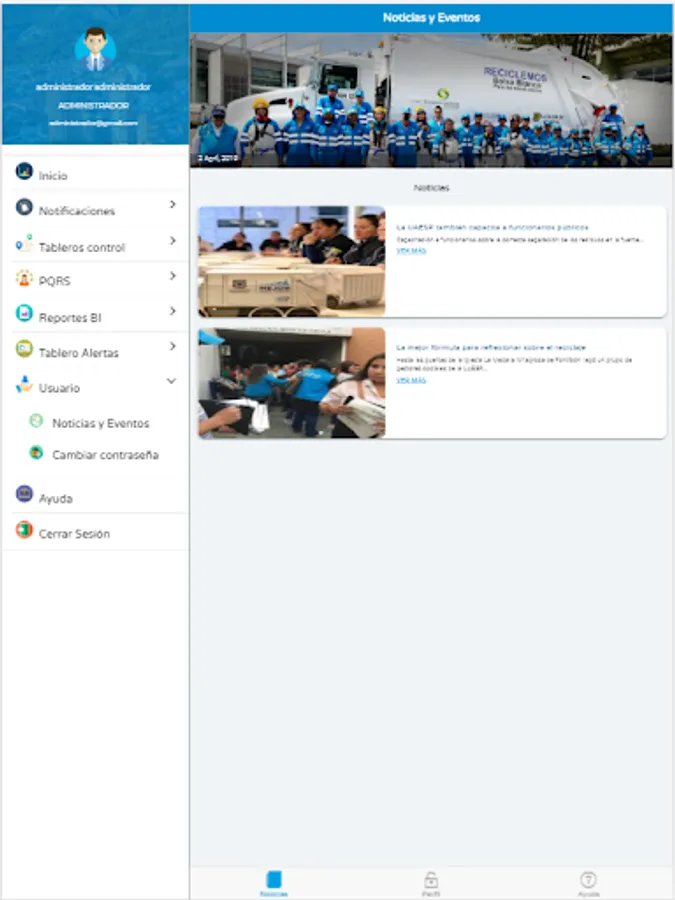 This is an application aimed at the executive and administrative staff of the cleaning operators of Bogotá. From here you can perform control and monitoring tasks related to the operation.
