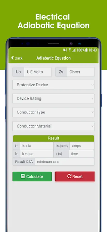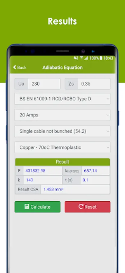 The Adiabatic Equation for calculating the cpc (circuit protective conductor) and earth minimum csa sizes for earthing conductors.