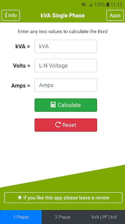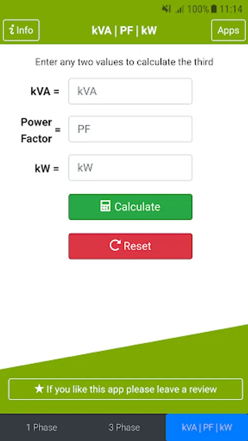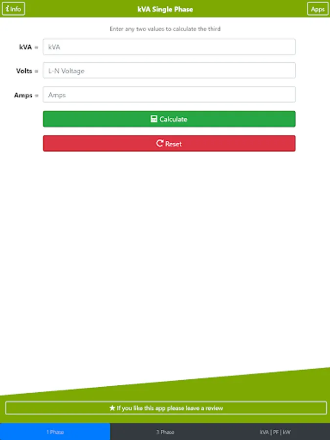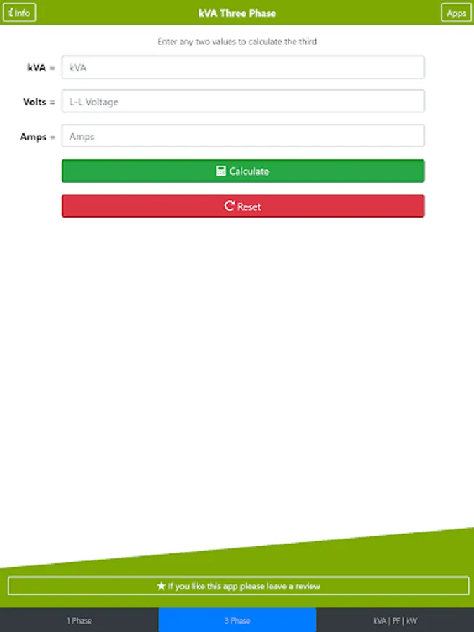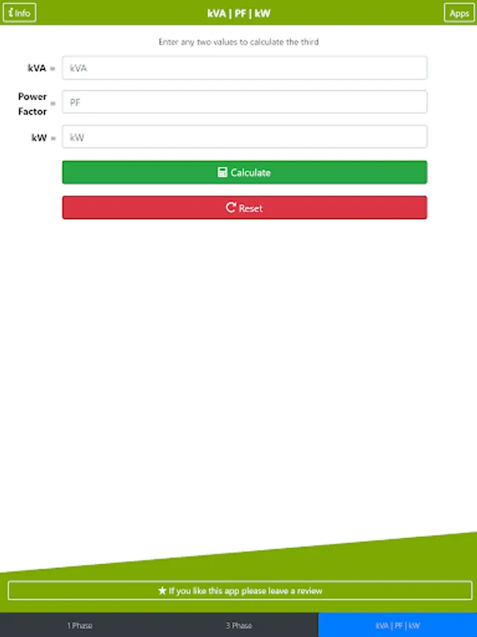 This kVA Calculator app is designed for Android phones and tablets. Don't forget to check out our other great suite of electrical apps for Android devices.