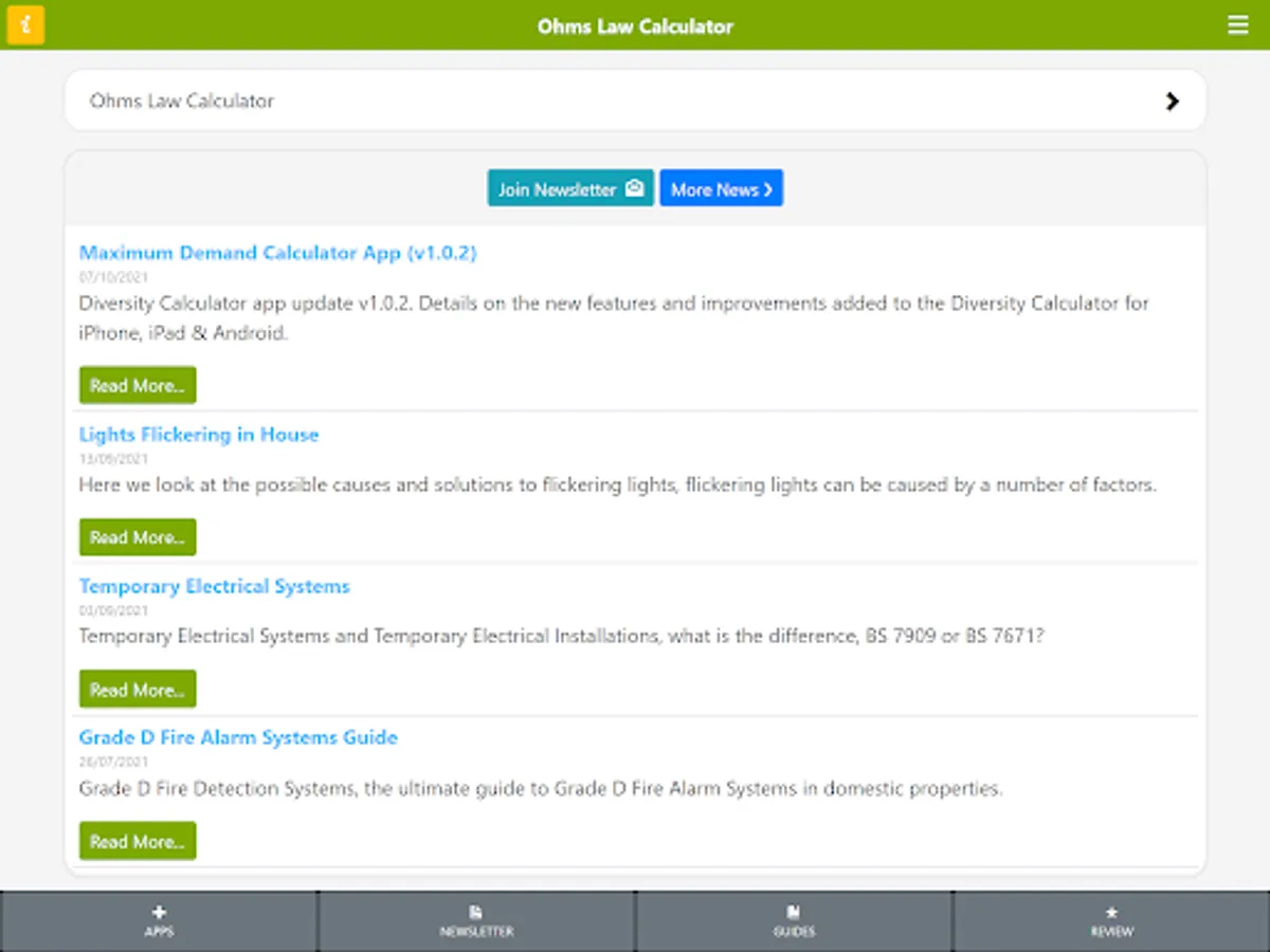 Calculate or convert the electrical units of Voltage (volts), Current (Amps), Resistance (Ohms) or Power (Watts) in an easy use to use app.