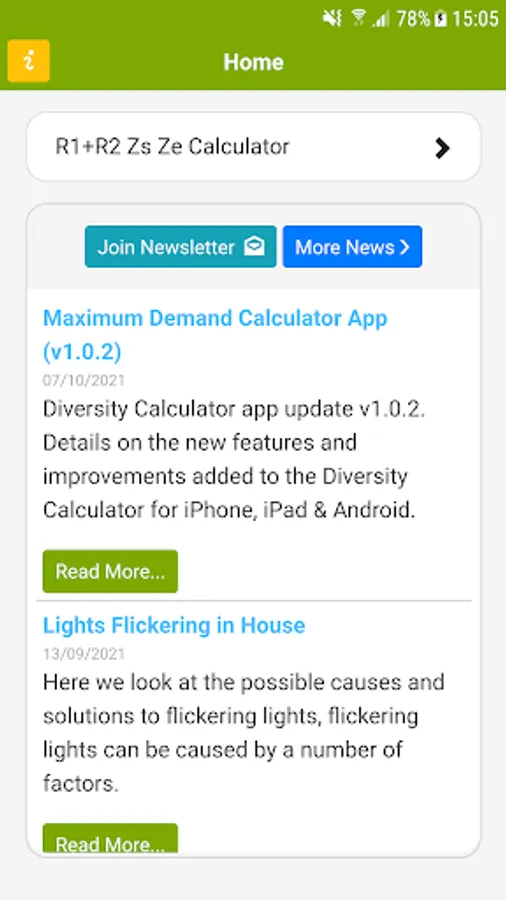 R1+R2 Zs Ze converter for Android devices. Easily calculate the earth loop impedance (Zs) from the R1+R2 and Ze values, also calculate the R1+R2 value from the Zs and Ze values.