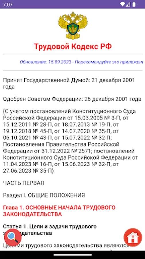 The Labor Code in its current, current version, with all changes and additions, article-by-article comments on the Labor Code of the Russian Federation, legislation on labor law and labor relations of the Russian Federation.