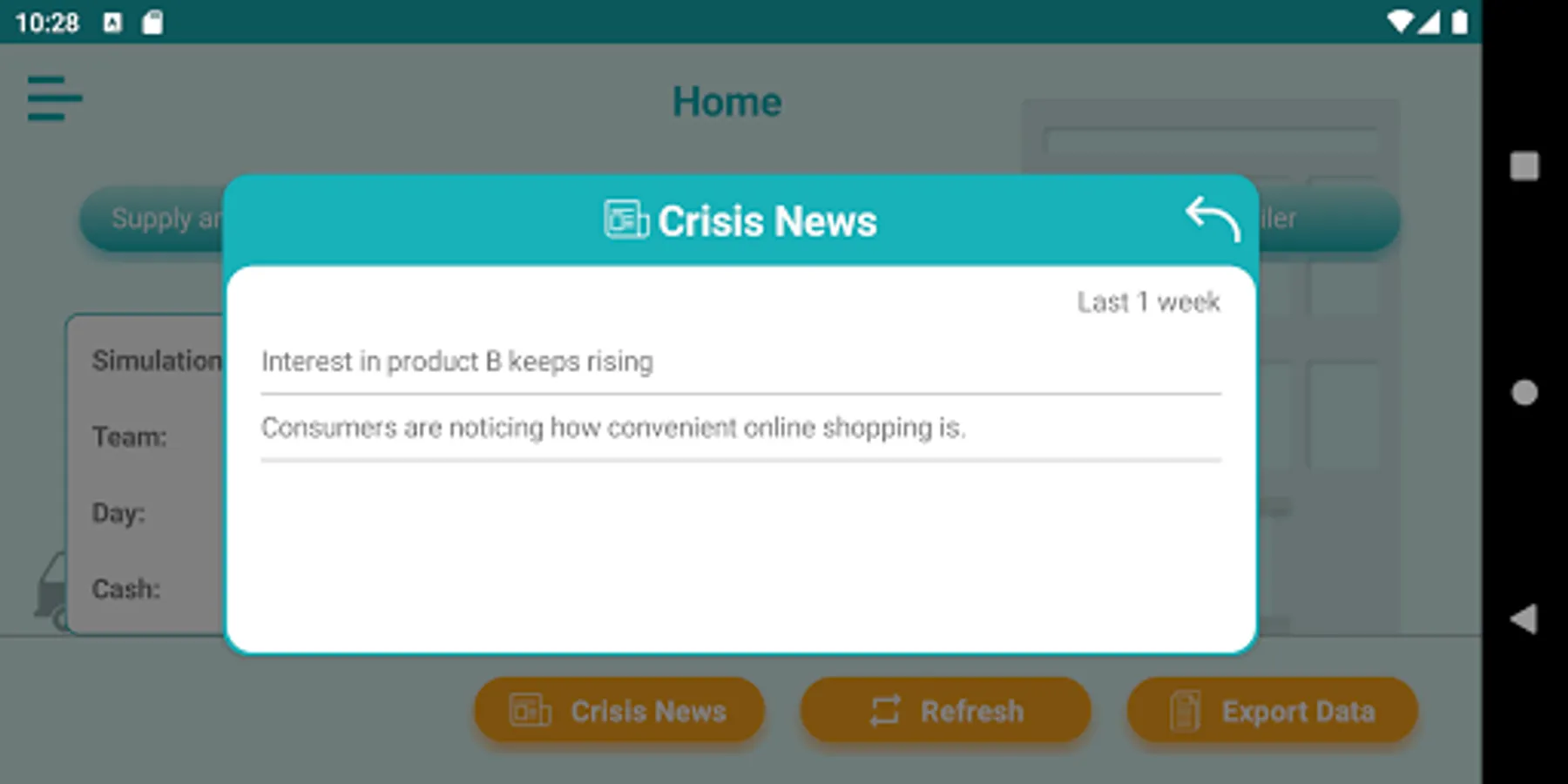 In this app, you will manage a section of an additives supply chain or the whole of it while learning how to face and prepare for different crises that will come your way. These crises can be your employees quitting from exhaustion, a callback because of a quality issue, or several other things.