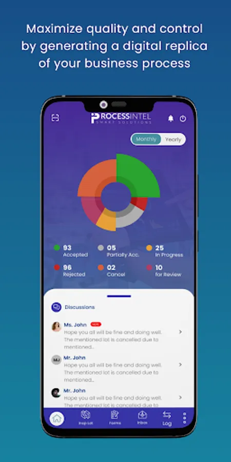 In the case of any defects in the procedure, a root cause analysis is performed, to narrow down the area of the problem, and identify the exact problem in the system. The system uses Quality Issue Management standards for the root cause analysis. Process Intel follows advanced QIM methods like Fishbone, 5Y, and FMEA. The inspection lot reports and tables will be generated in real time for a detailed analysis of the progress. Users can download the graphical or tabular reports for offline use in the form of Excel spreadsheets.