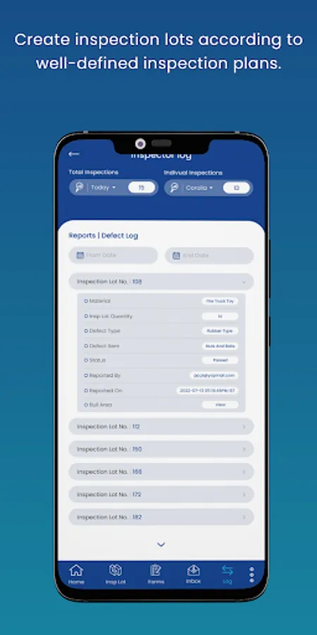 Every inspection plan is followed with formality. Individual inspection lot is comprised of a blend of materials, the plant at which the products are being held, and events when the inspection plan is assigned for the lot. The lots are distinguished from one another based on a few unique identifications like tracking numbers, reference number, and batch number. A lot can be created either manually through a web browser, extracted from an excel file, or integrated through an external system. The created lots can be assigned to specific inspectors, and inspectors will use the mobile application to execute inspections on those lots. Inspection lots reports are created based on pre-defined inspection plans. Users can use the same inspection plan on various lots with different batch sizes.