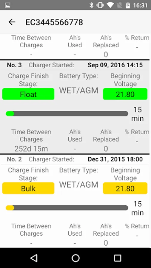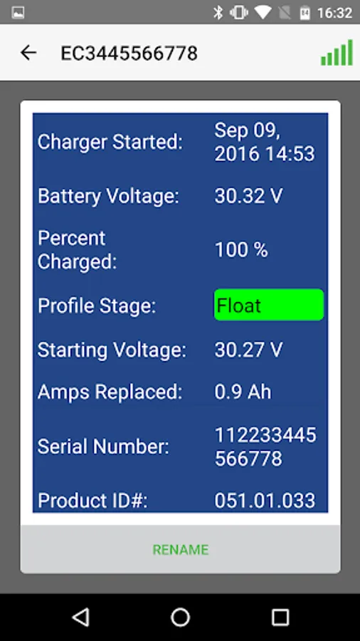The stored charging data includes: date and time stamp information, battery type(s) and voltage, beginning battery voltage, Amp hours replaced, percentage returned and early charge termination(s) details. Other valued features include the ability to assign a name and/or an asset number to your charger/equipment, assistance in locating your charger up to 200 ft., one button upload of your historical charging profile to an email, one button push to call PCS customer support, the capability to receive messages and update your charger to the latest firmware, access to app tutorial, set up videos, definitions, FAQ’s and more.