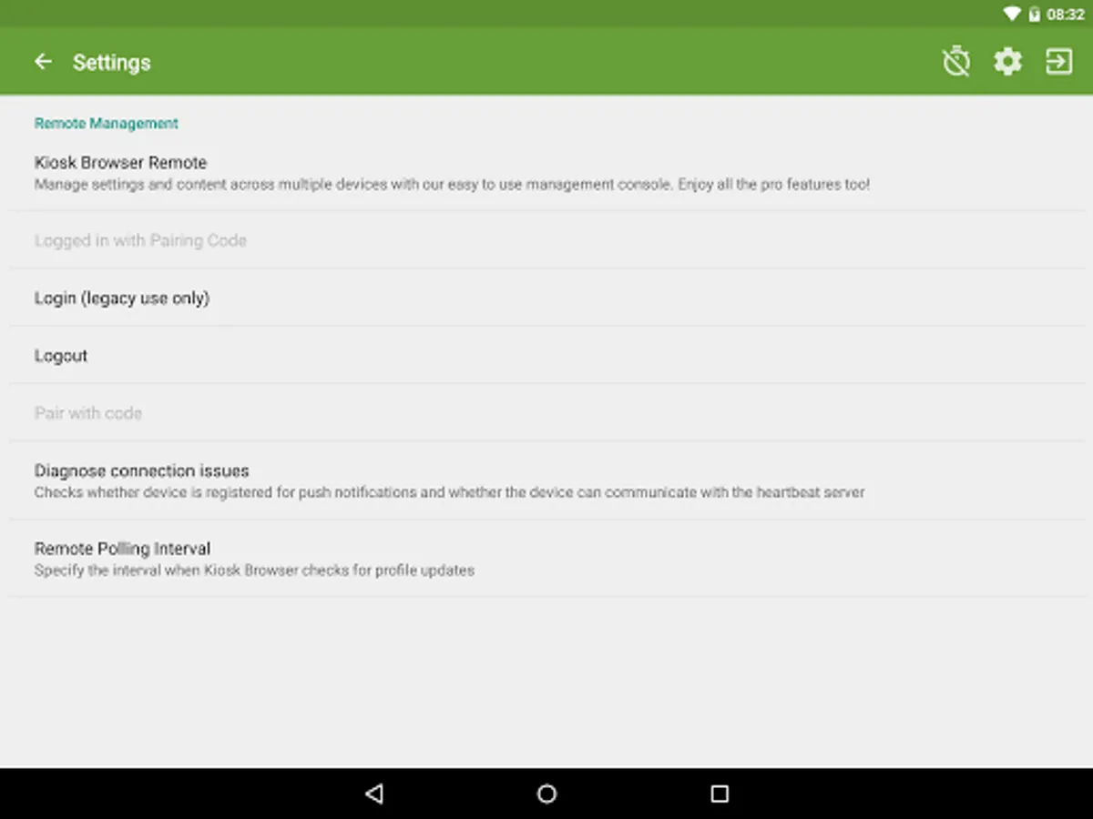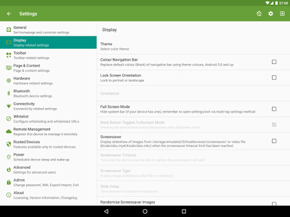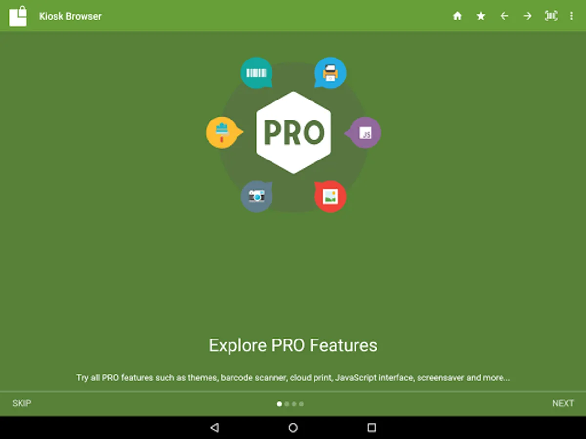 Designed for use on any Android device and is great for creating public kiosks, interactive digital signage etc.... Lock down the user interface so that the end-user can only access your defined webpage(s) and can't adjust Android system settings or gain access to other applications.