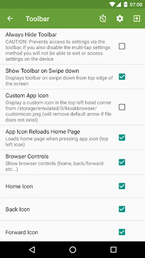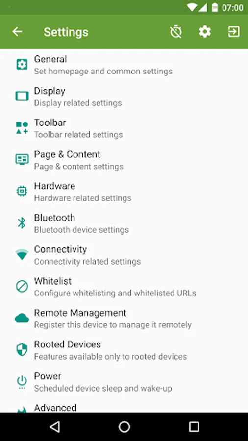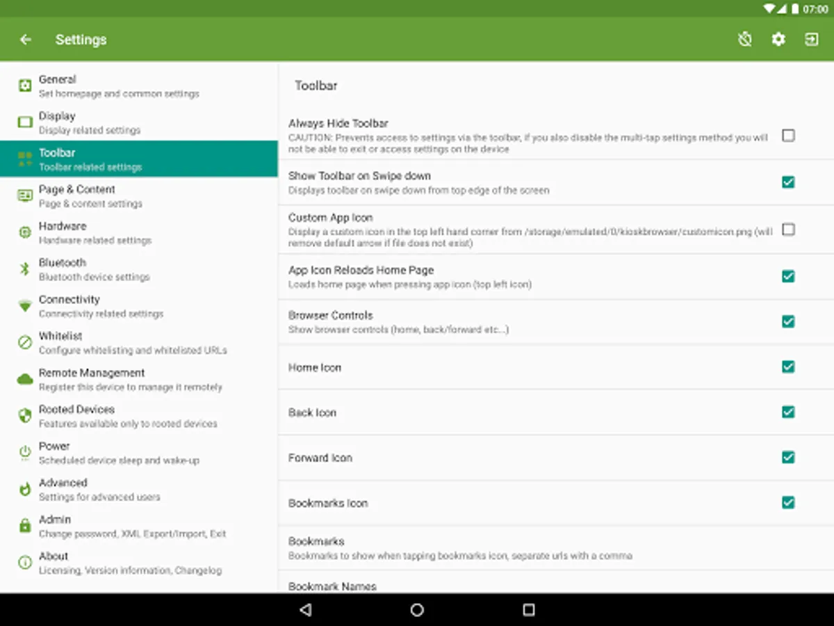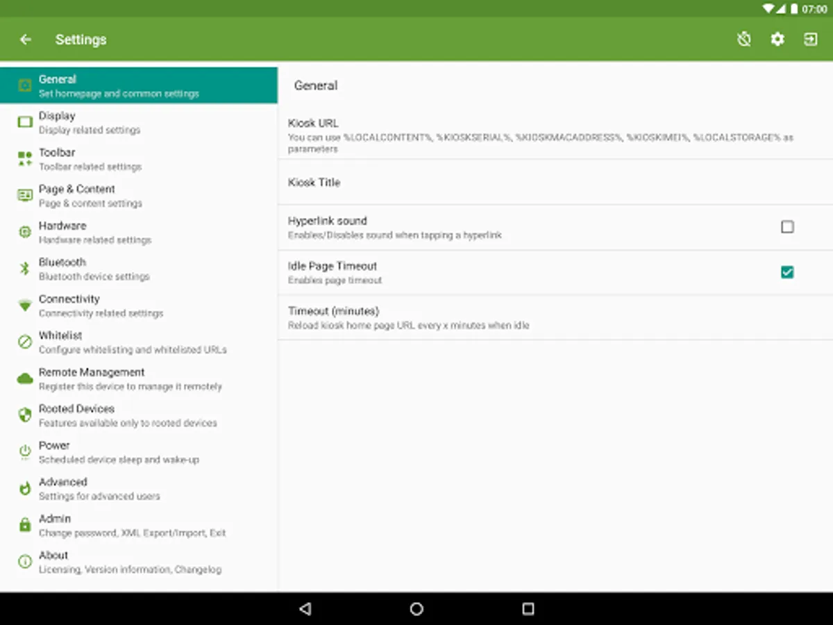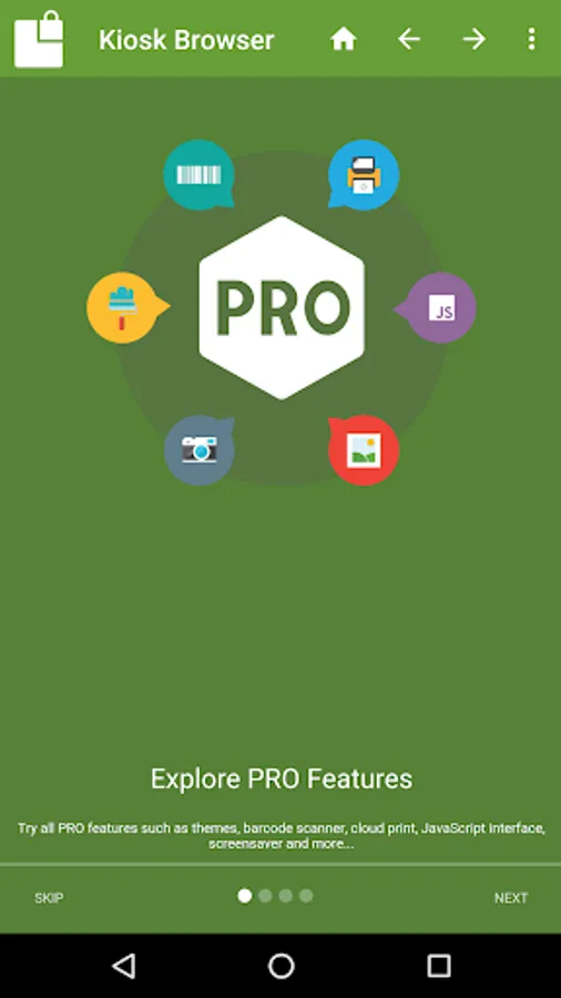 Designed for use on any Android device and is great for creating public kiosks, interactive digital signage etc.... Lock down the user interface so that the end-user can only access your defined webpage(s) and can't adjust Android system settings or gain access to other applications.