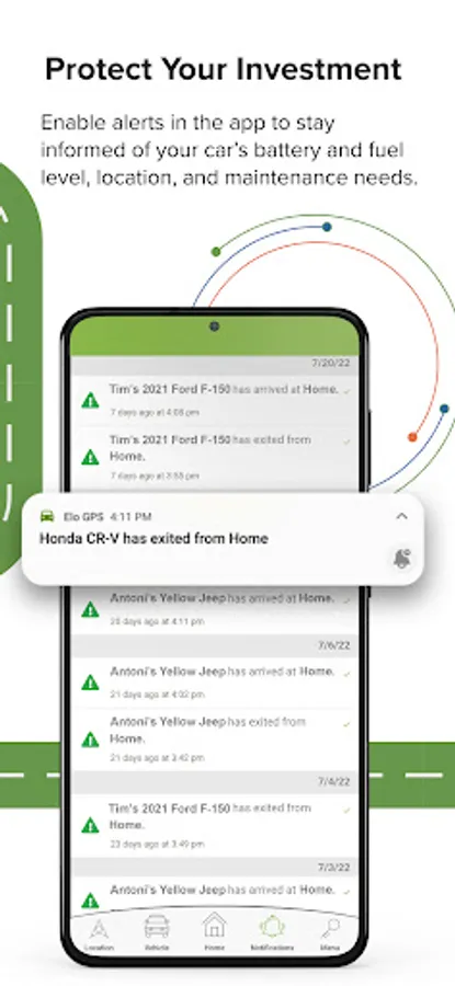 - See your car’s location in real-time to make sure it’s where it’s supposed to be and set custom virtual boundaries to be alerted if your vehicle enters or exits a designated area.