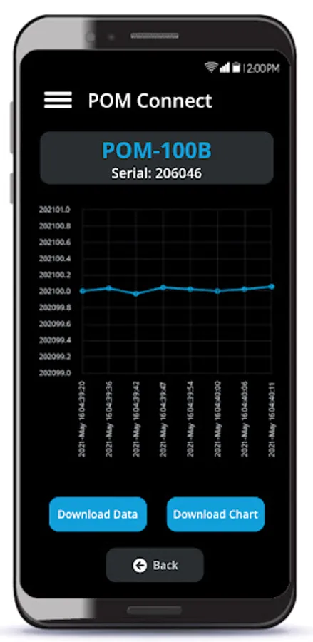 - Shows Real-time Data from POM-100B/POM-5B Oxygen Monitor over Bluetooth Low Energy(BLE)