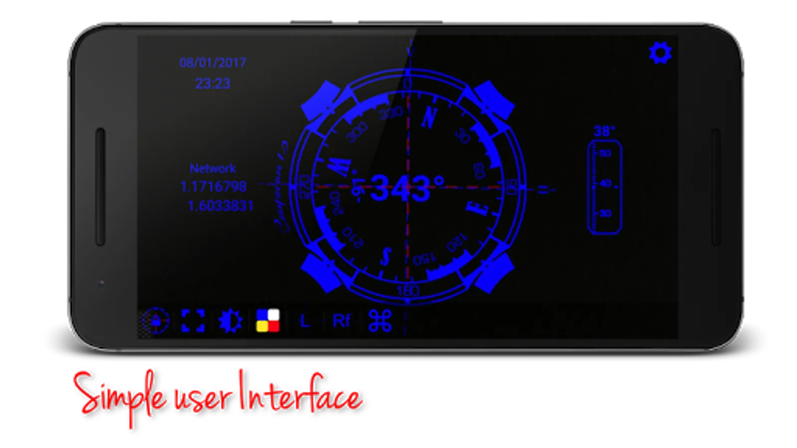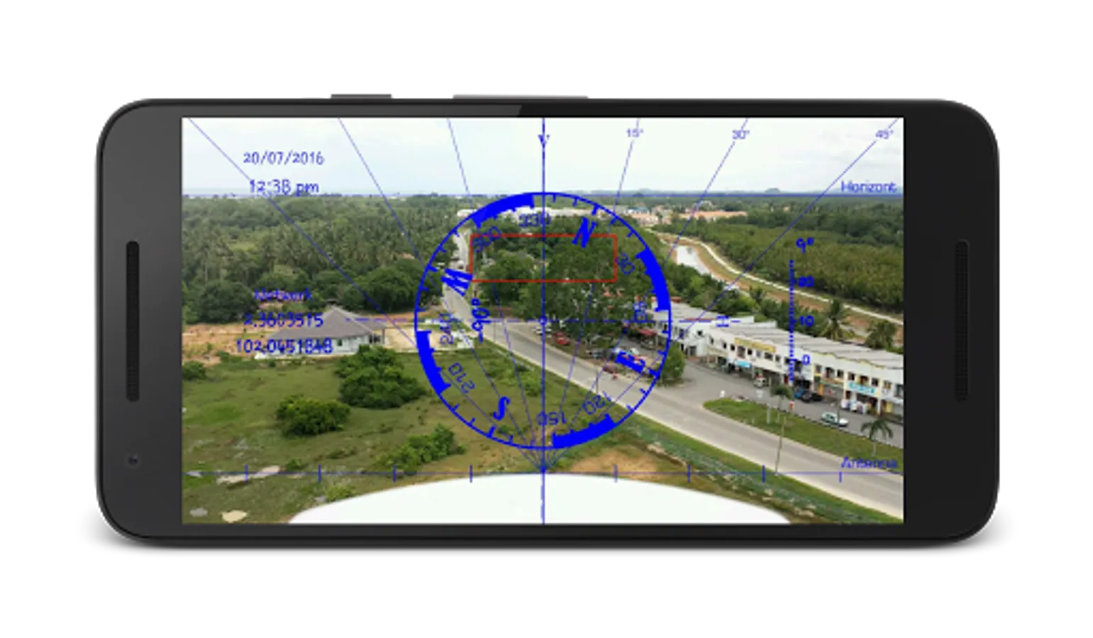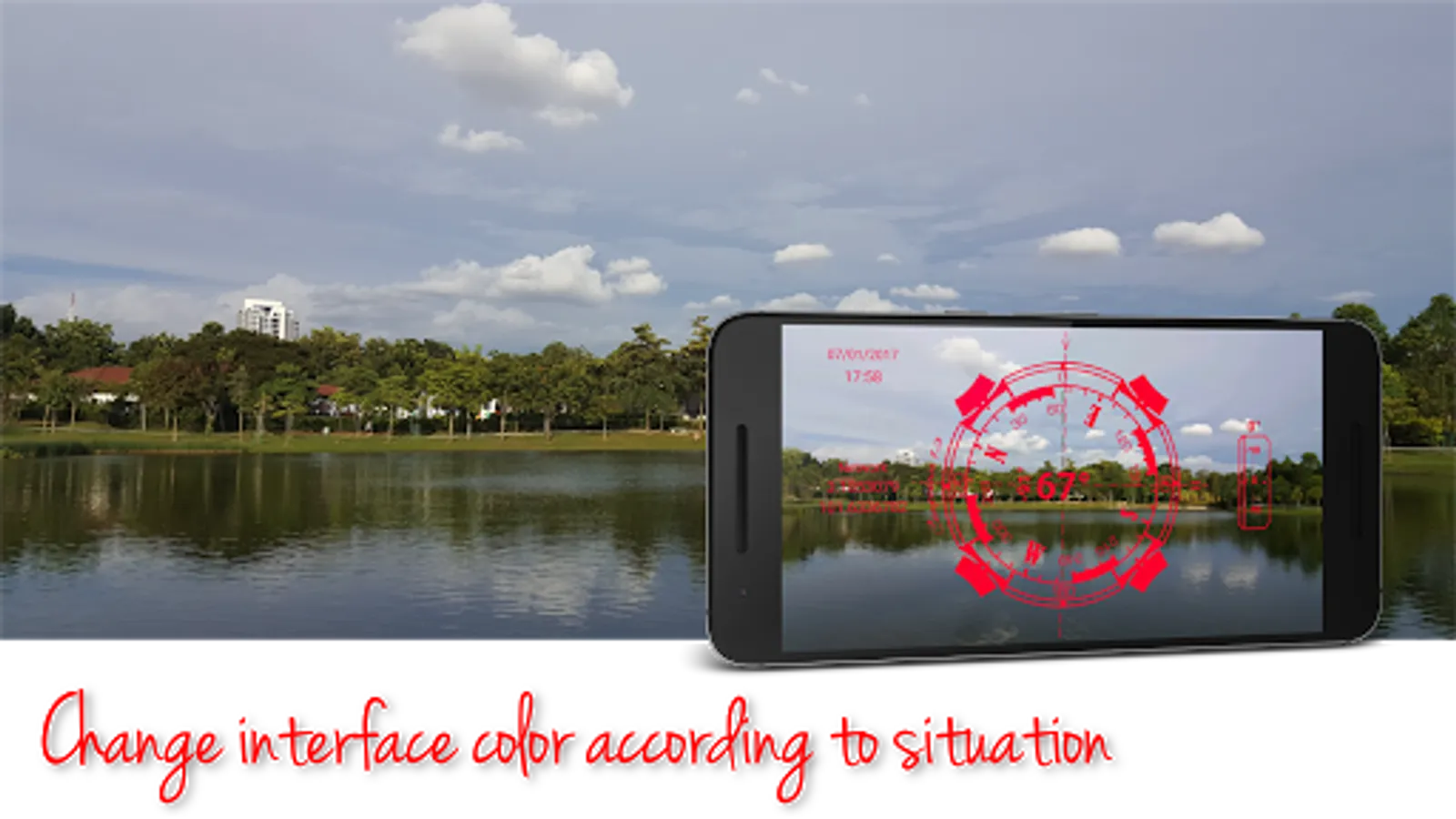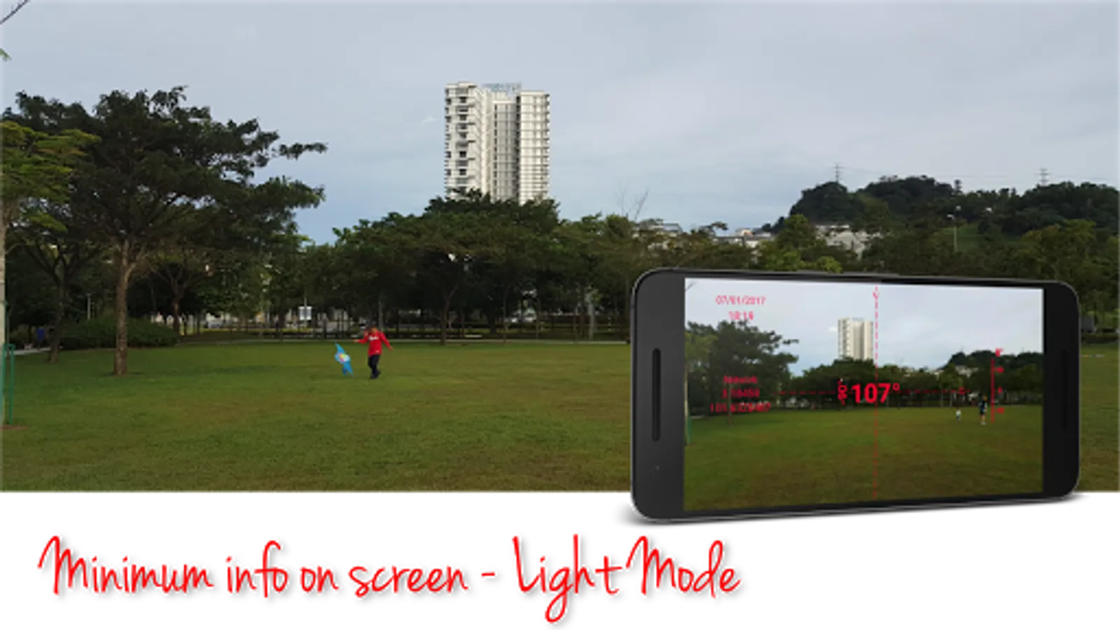 2. Two mode: camera mode (compass and camera), only compass mode. Automatically change when you change device orientation from horizontal (face up) to vertical (face front).