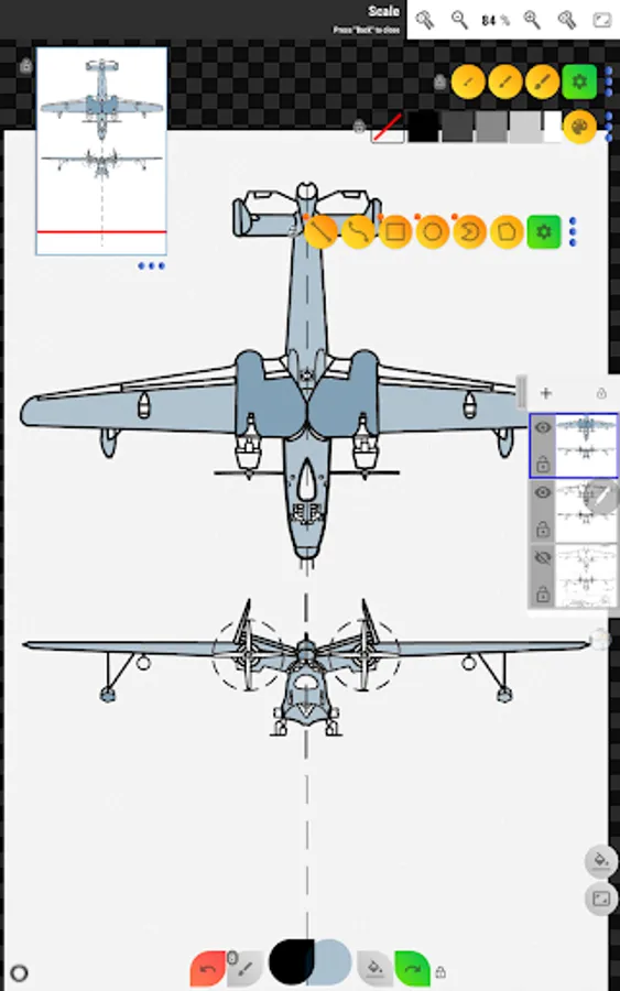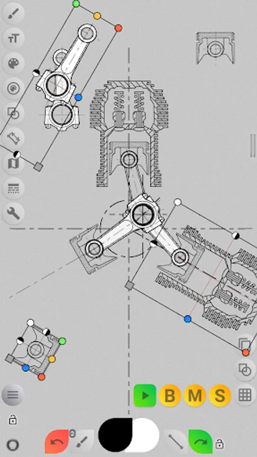 - Insert Images from device gallery, rotate, resize and control opacity of it (assemble more complex sketches from parts).