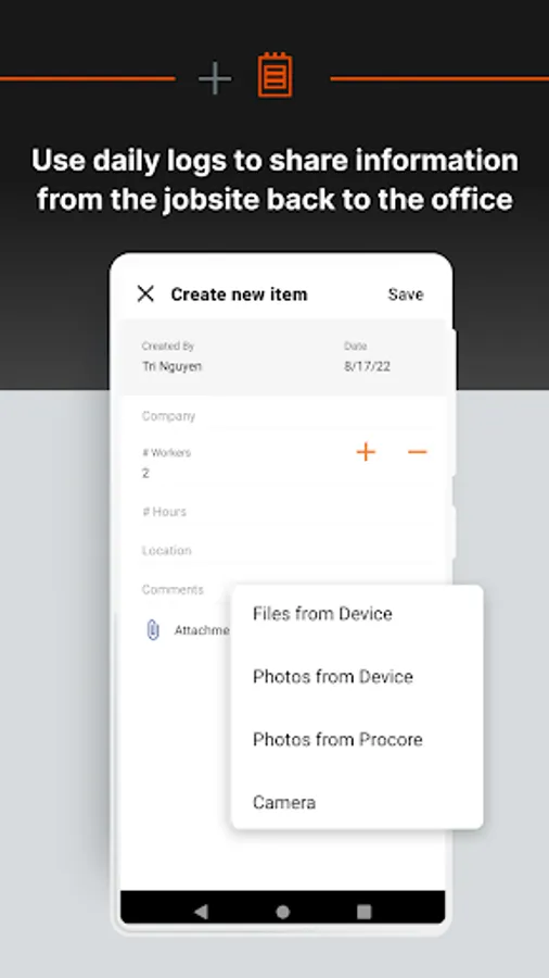 Keep track of every detail including labor, communication, equipment, materials, and job site events each and every day.