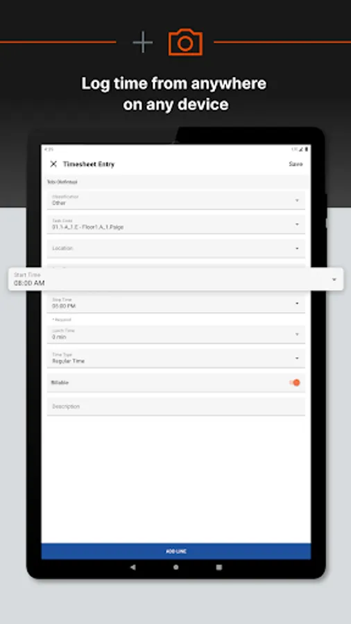 Have anyone on the team enter project time from the office, the trailer, or the field directly from their mobile device.