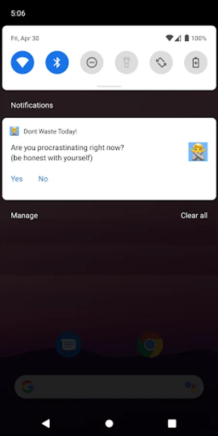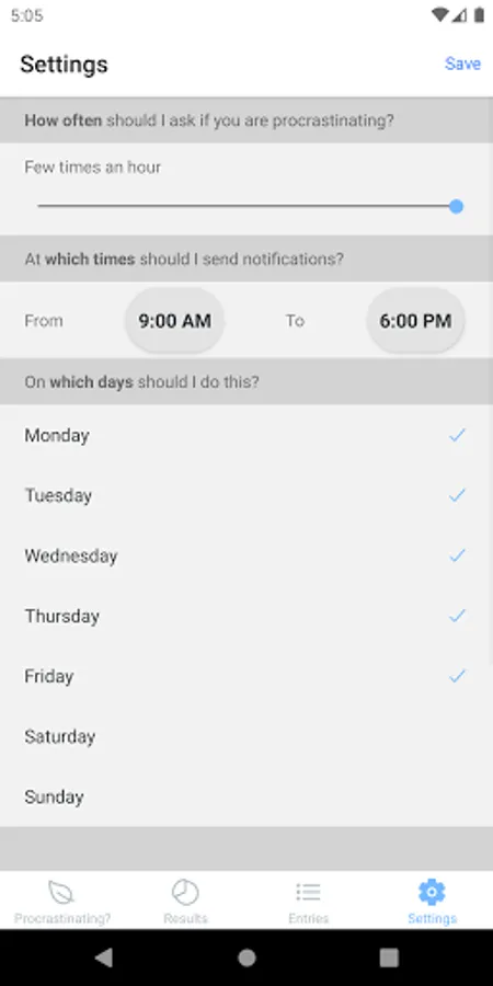 2️⃣ At those times, the app will notify you to ask if you are procrastinating