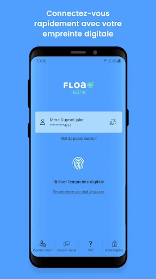 With your FLOA Bank online banking app, log in quickly with your fingerprint