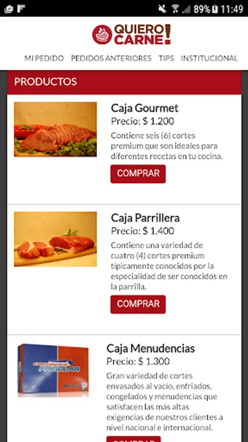 I want meat! realizes, through this application, sale and delivery of meat to private neighborhoods in the north and south of Greater Buenos Aires.