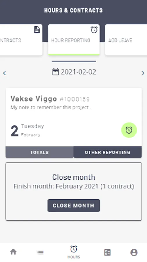 - Manage your hour reporting continuously or choose to get notifications when you have hours to report