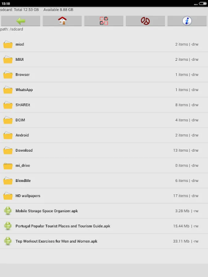 Mobile Storage Space organizer App helps you to efficiently manage all your phone device data and SD card files and allows you to copy deleted rename move or share this files easily.