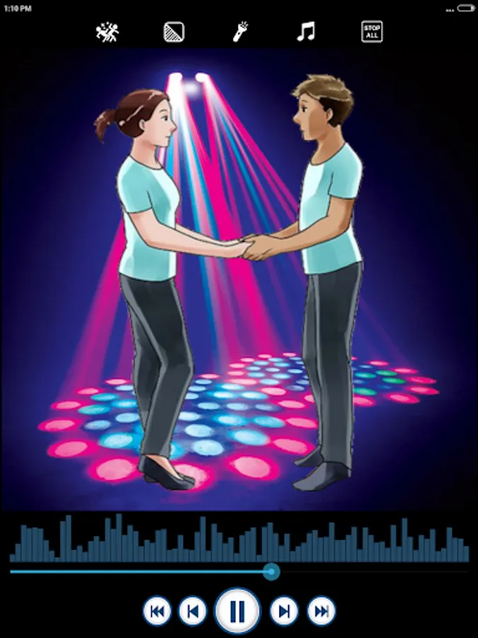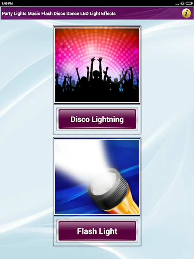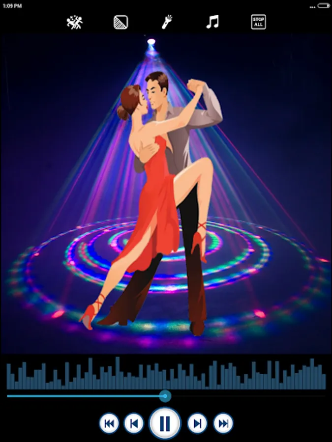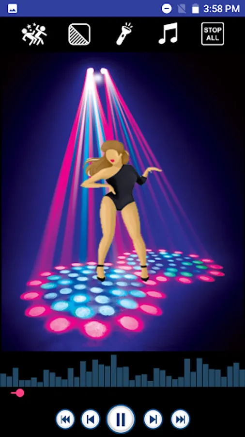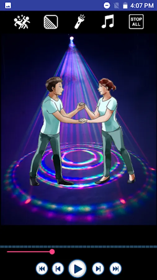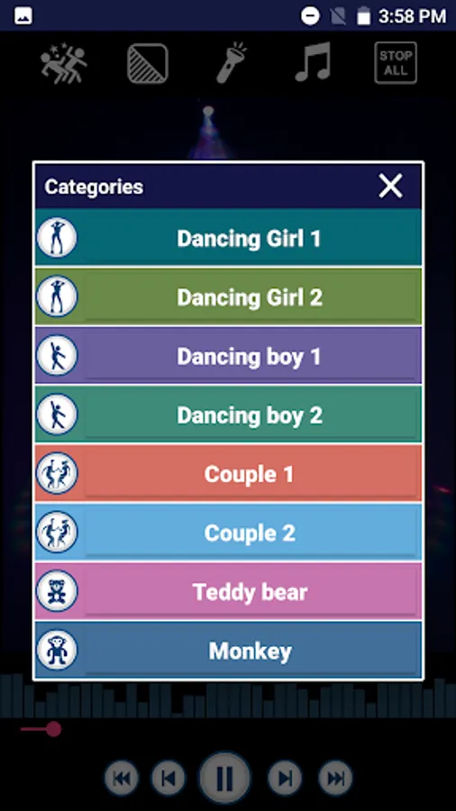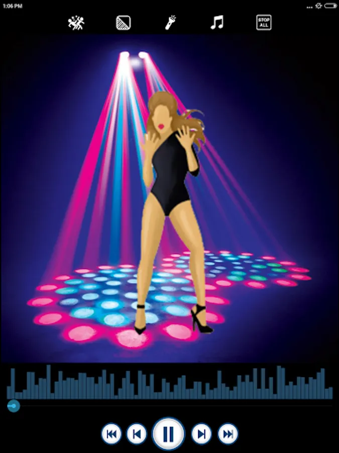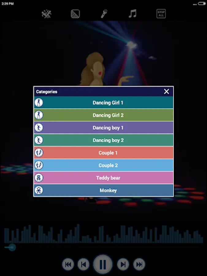 This app allows you to have fun with Disco Lightning with different categories like Dancing girl couple teddy bear and monkey with variety of color background effects. With this app you can easily select your favorite track from the phone library and play with different dancing character and you can change dancing character background according to your choice. Musical Flash Lights Effects App has variety of background categories like Disco light color background disco floor splash and No light.
