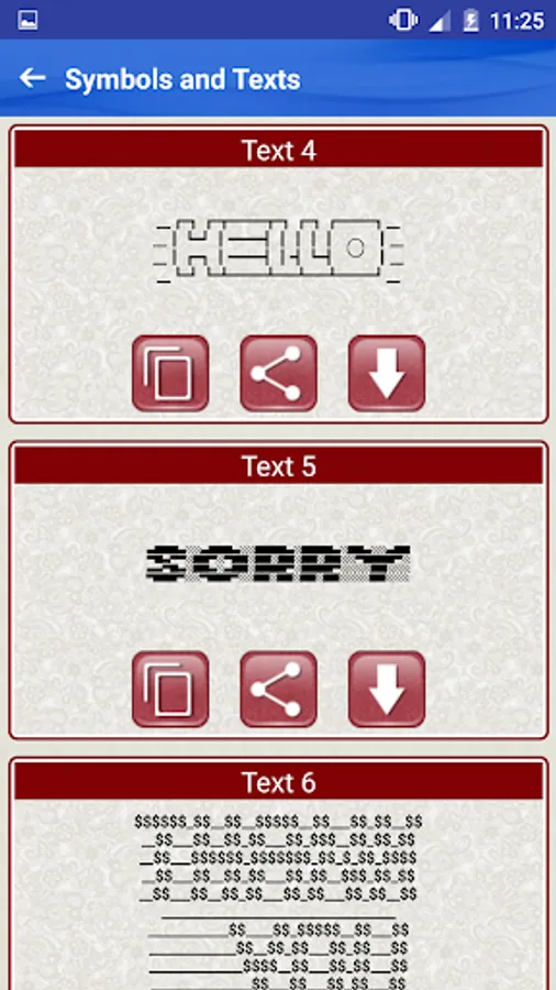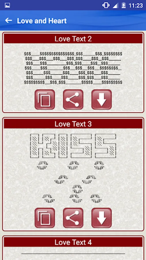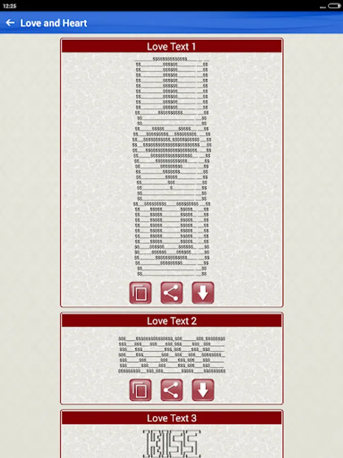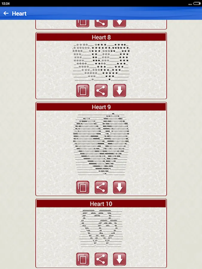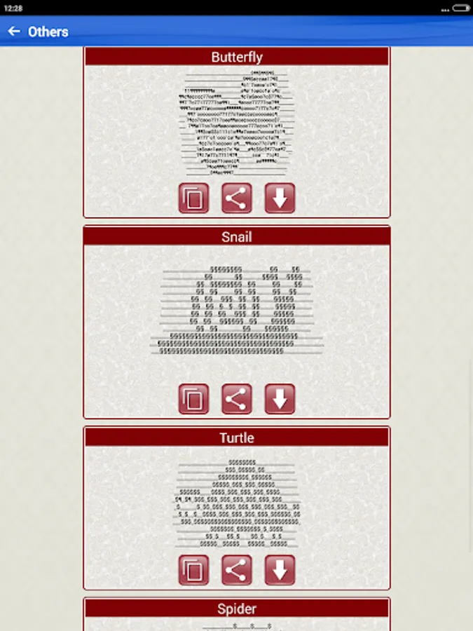 This Free app contains hundreds of Cool ASCII text art pictures made with standard keyboard symbols and basic ASCII computer symbols and characters including: