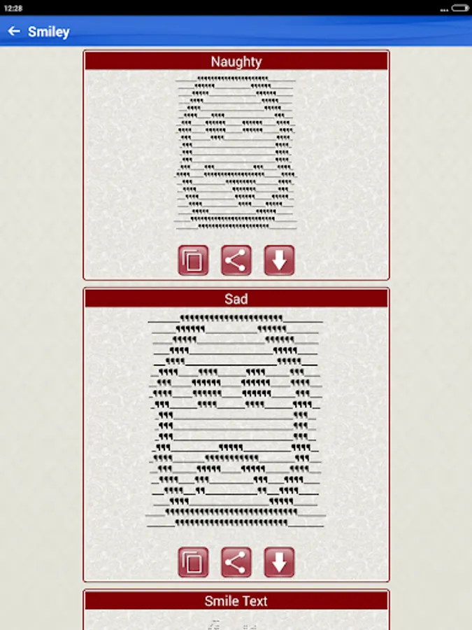 Discover awesome text made pictures in this app with Cool collection of ASCII Text Art Emoji Arts and Characters text arts that you share on Facebook WhatsApp chat etc or just copy and paste anywhere.
